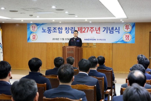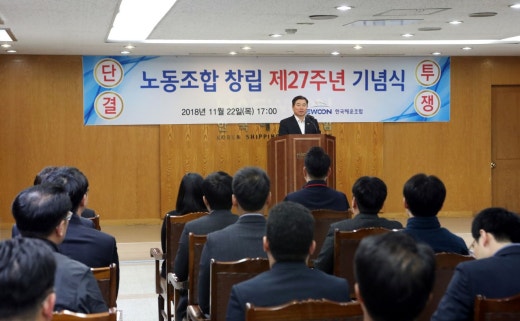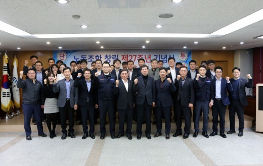 | 내용 | 11월22일(목) 17:00 본부 8층 대회의실에서 본부 임직원 약 50여명이 참석한 가운데 제27주년 창립 기념식을 개최하였습니다. 행사는 개회선언, 조합원 자녀 장학생 포상, 김지현 위원장 기념사 및 임병규 이사장 축사와 기념사진 촬영순으로 진행되었으며, 김지현 위원장은 기념사에서 제17대 노동조합 슬로건인 상식과 정의가 통하는 한국해운조합을 만들기 위해 계층간의 욕심, 갈등은 잠시 접어두고 조합이 발전할 수 있는 방향으로 집중할 때이며, 직원들이 조합원들을 위해 일하는 조합, 직원들간의 선의의 경쟁이 있는 조합, 모든 직원이 서로 배려하며 화목한 조합이 되길 기원하였으며, 임병규 이사장은 축사에서 노사가 상생하는 즐거운 직장을 만들어 나갈 수 있도록 적극 협조하겠다고 밝혔습니다. |