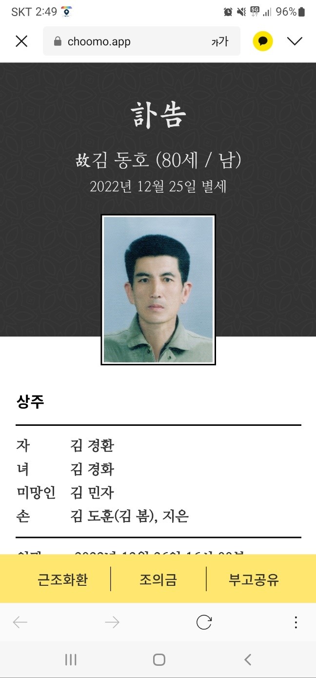 (訃 告) 완도지회 박은천 조합원 조모상(22.12.7.)