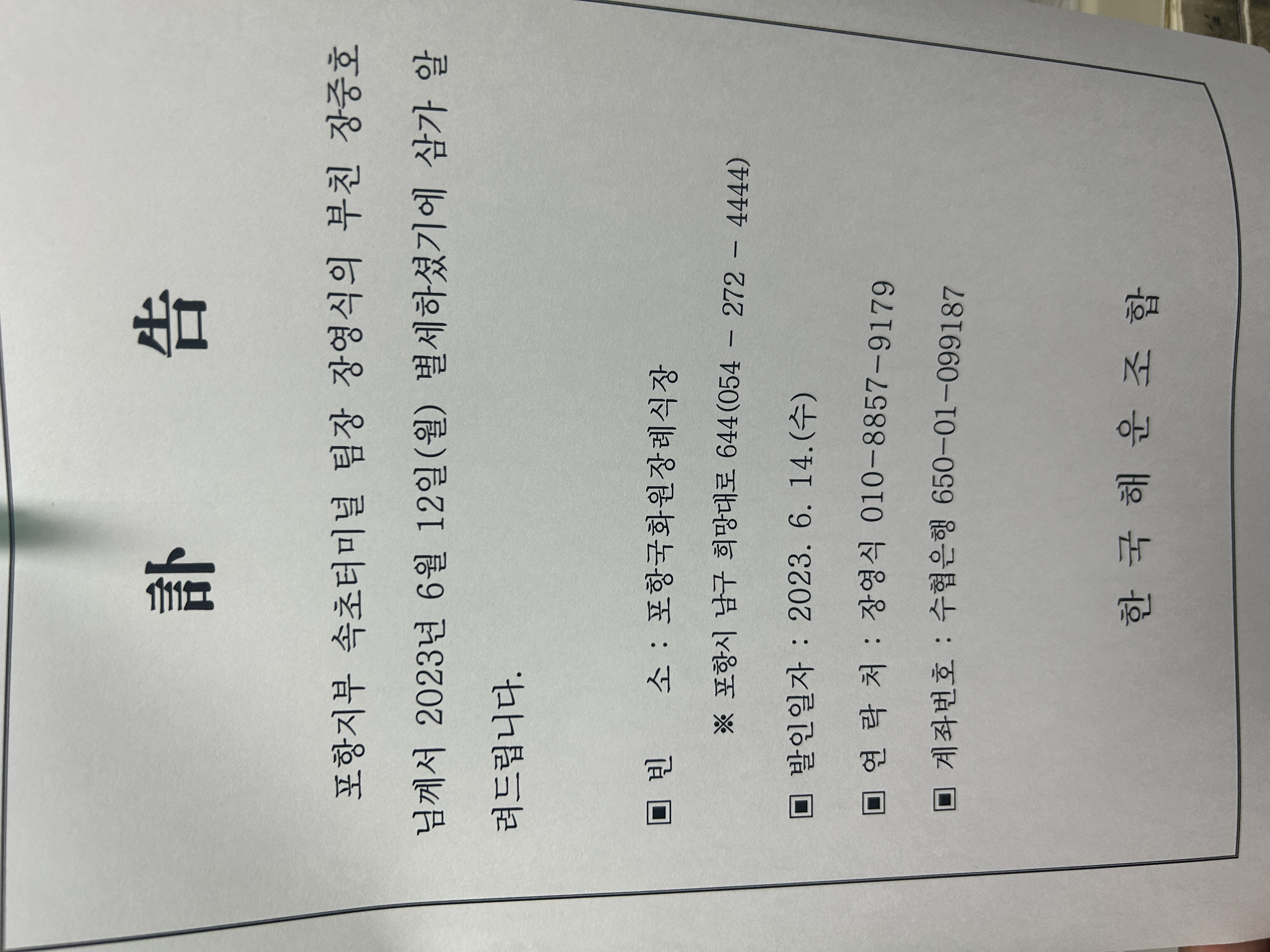 (訃 告) 포항지회 장영식 조합원 부친상(23.6.12.)