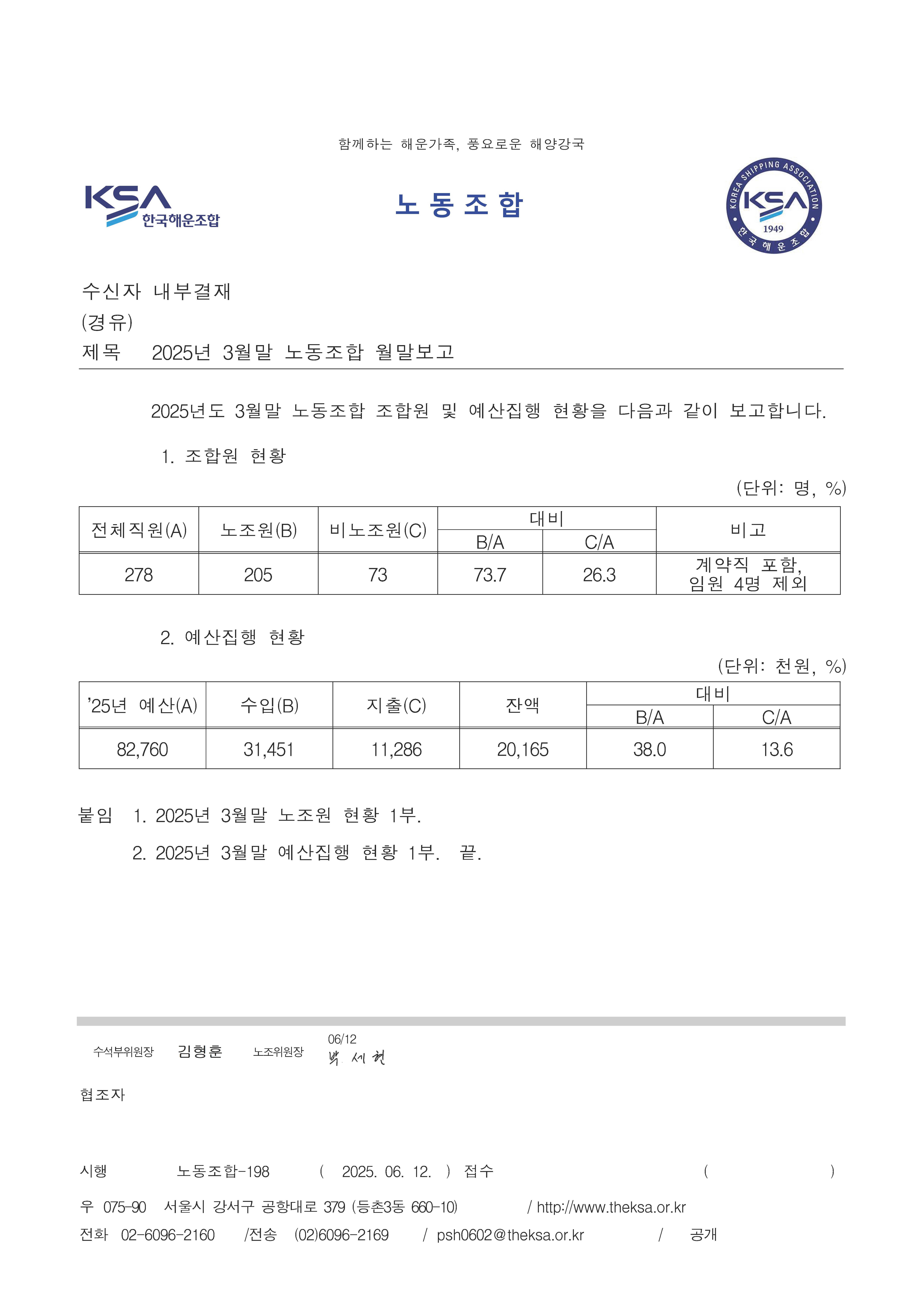 | 제목 | 2025년 3월말 노동조합 월말보고 | ||||
