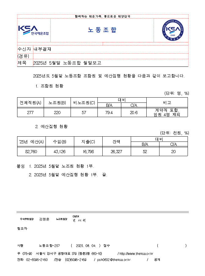 | 제목 | 2025년 5월말 노동조합 월말보고 | ||||