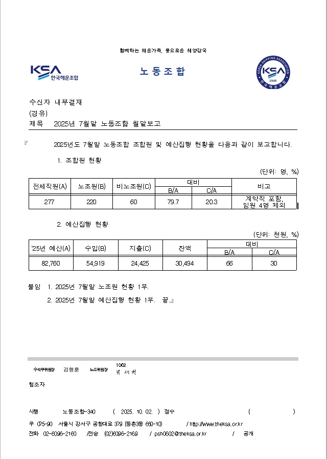 | 제목 | 2025년 7월말 노동조합 월말보고 | ||||
