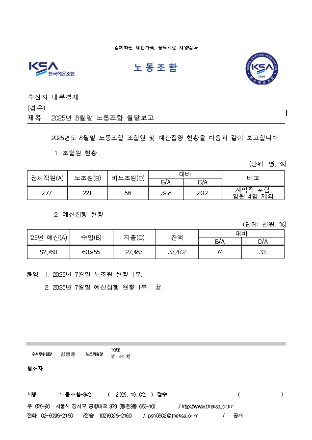 | 제목 | 2025년 8월말 노동조합 월말보고 | ||||