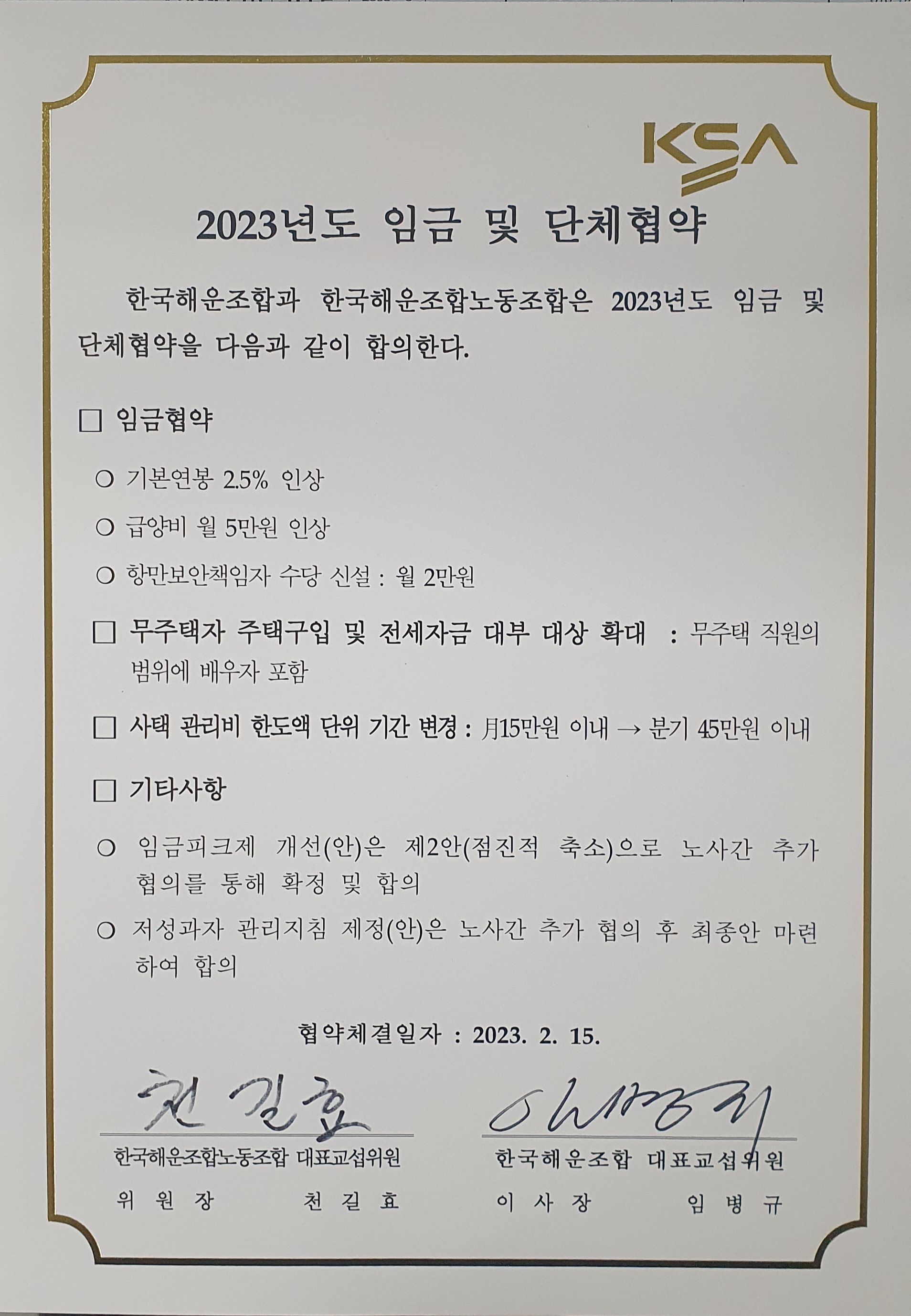 2023년도 임금 및 단체협약서